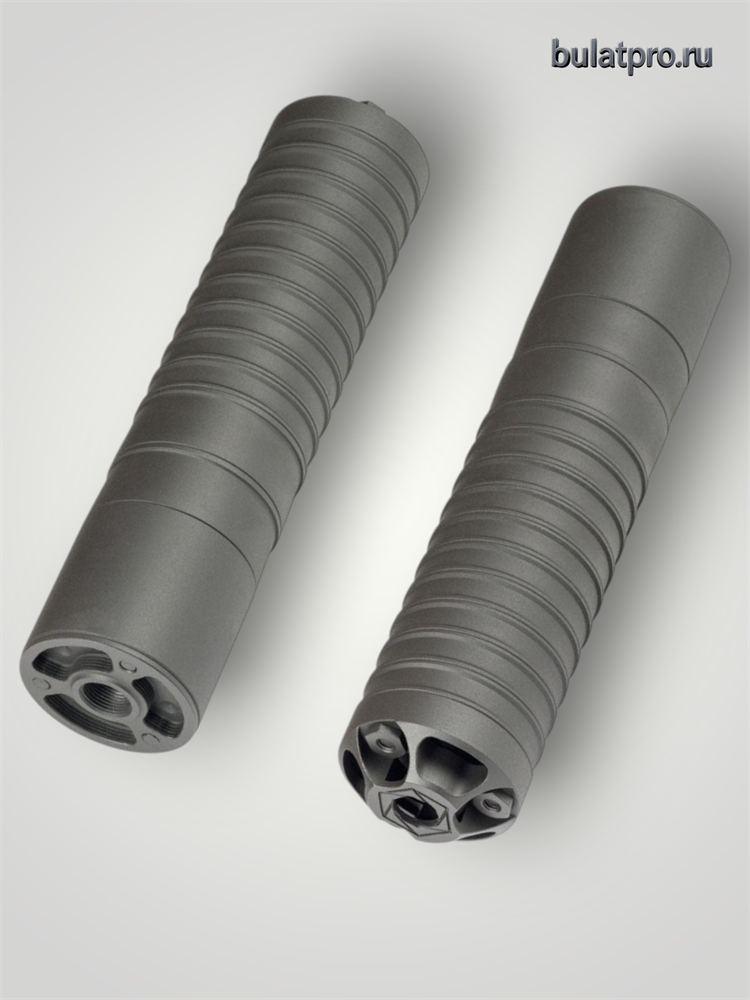 - Реактивная многокамерная конструкция модератора звука с 13 камерами позволяет добиться снижения звукового давления до 25-30 дБ;