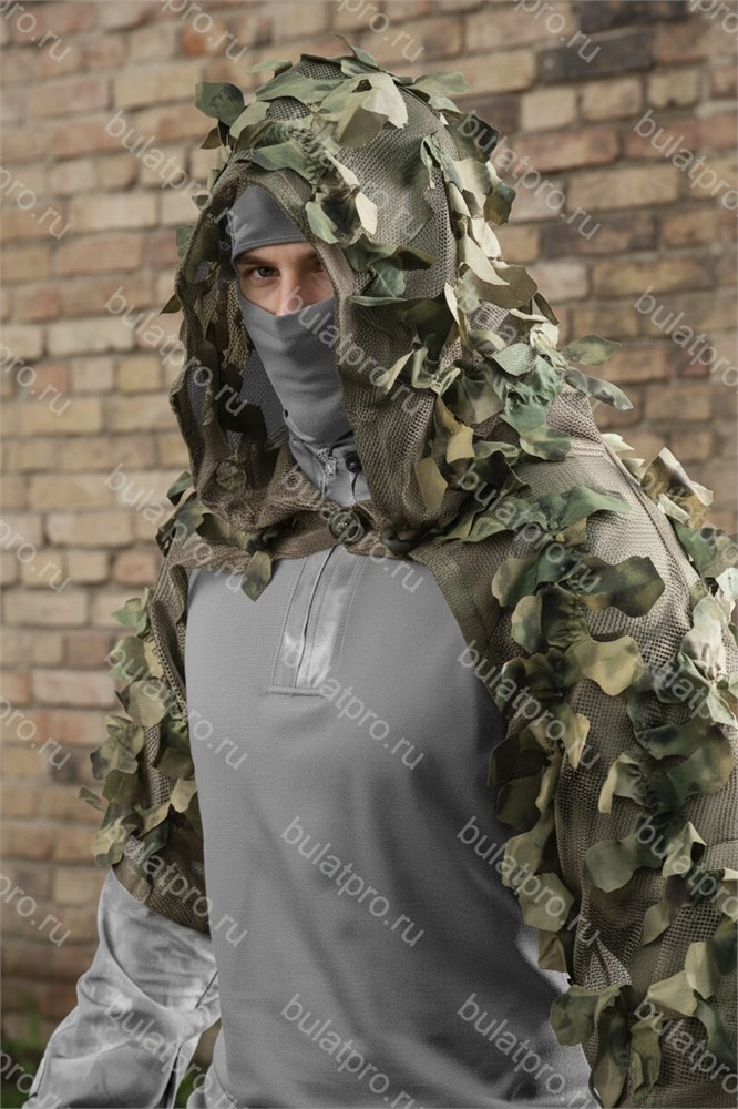 - прозрачная (не мешает обзору и ориентации) сетка для лица, интегрированная в капюшон, предохраняющая от насекомых и улучшающая маскировку пользователя - скрывает светлую, выделяющуюся кожу лица и выделяющиеся контуры лица (избавляет от необходимости использования грима);