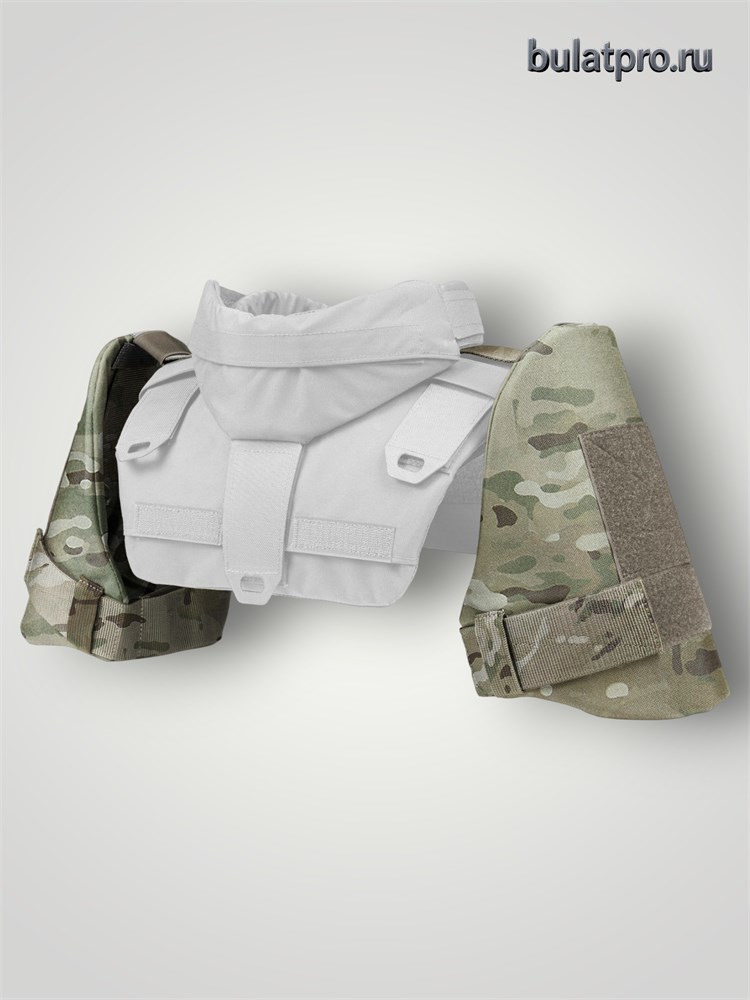 Наплечники (комплект 2шт) предназначены для защиты плеч от поражающих элементов в виде осколка. Наплечник состоит из чехла выполненного из материала нейлон плотностью 1000D и противоосколочного пакета СВМПЭ. Пакеты в ходе проводимых сертификационных испытаний показали высокий результат V50% непробития поражающих элементов на скорости до 550 м/с.