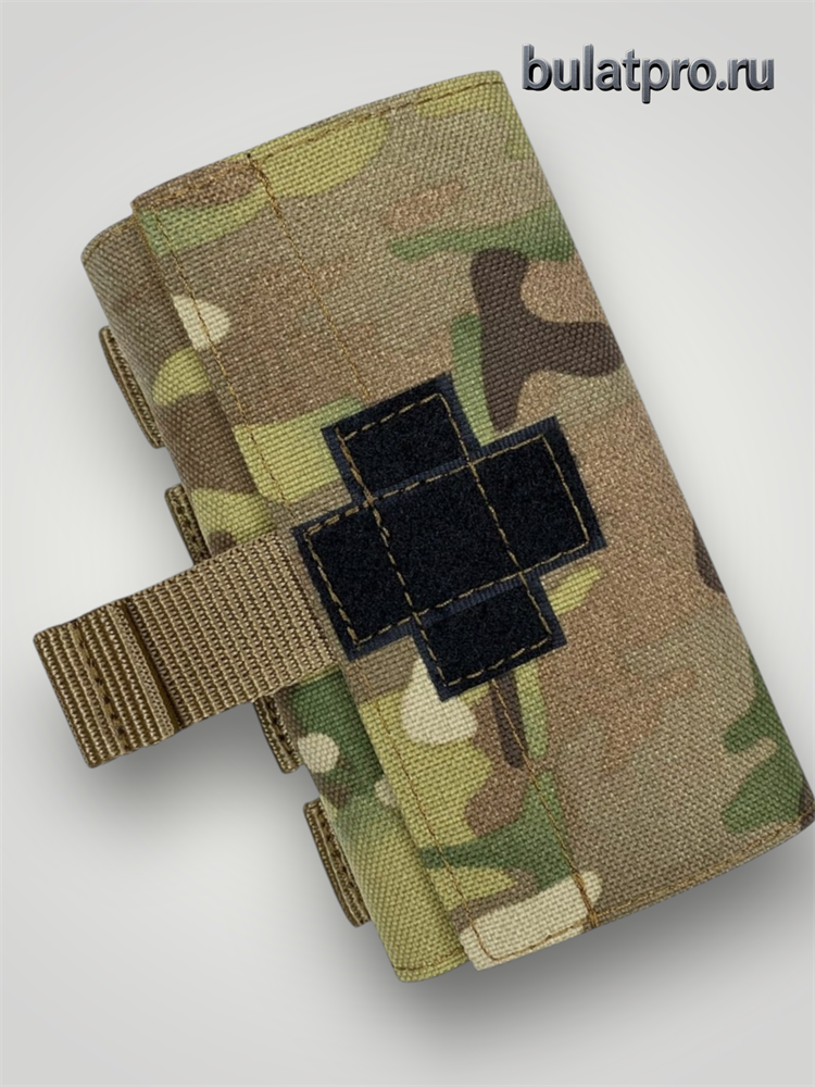 Подсумок крепится горизонтально с помощью системы молле. Размер в закрытом виде 15х5 см. Имеет отделение под ножницы (ножницы в комплект не входят). Вмещает любые виды жгутов и турникетов. Удобный хлястик для открывания подсумка не цепляется за другое оборудование. Резинка, удерживающая турникет имеет 2 дополнительные петли для маркера или ХИС. Материал кордура 1000D с ик ремиссией.