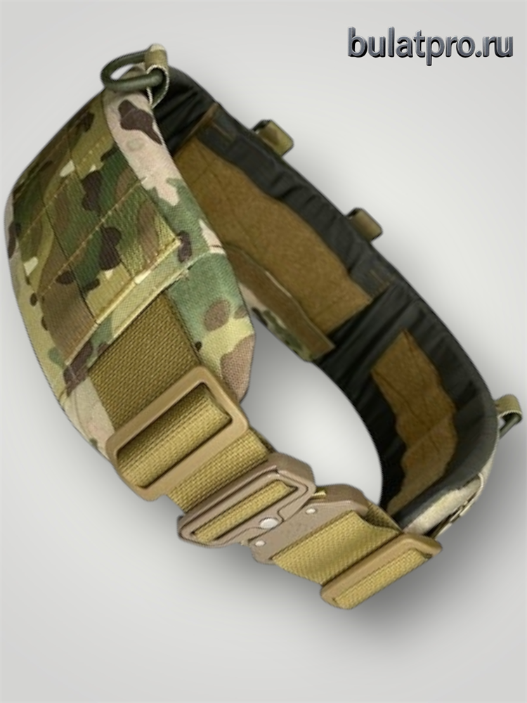 Пояс изготовлен из кордуры 1000D с ик ремиссией, стропы молле с ик ремиссией. Длина пояса 90 см. Имеет анатомическую форму и возможность установки баллистики. Оборудован надежной металлической пряжкой типа "кобра".