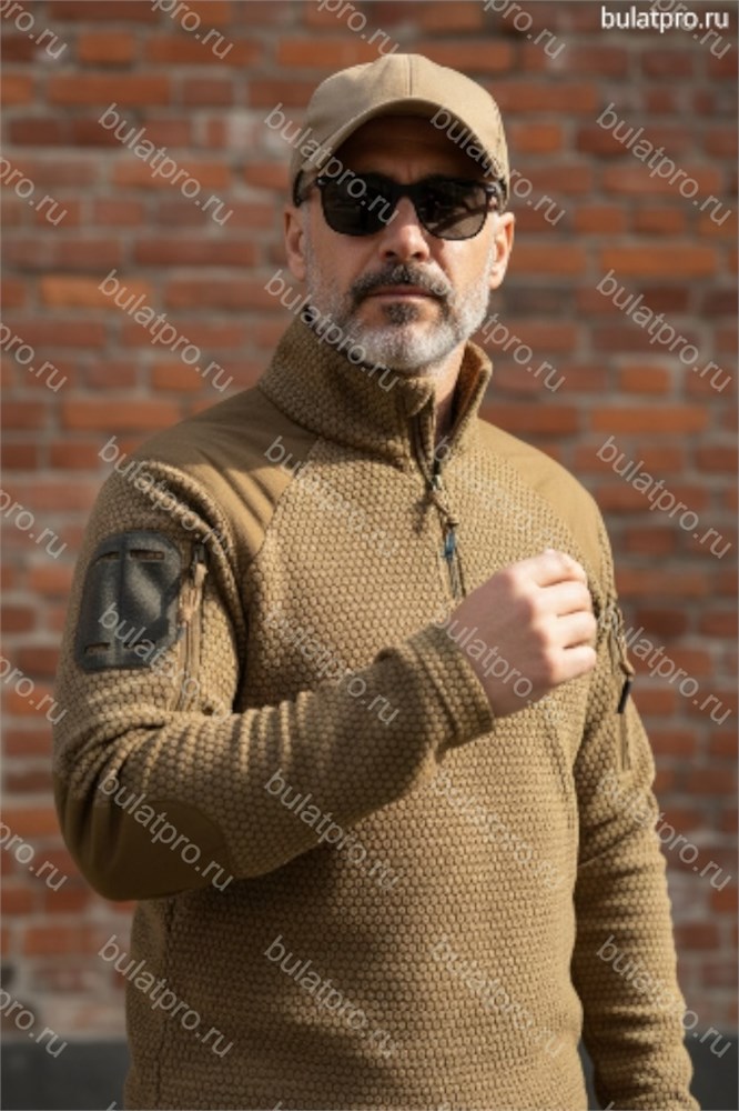 Флисовая кофта, сделанная из качественного и износостойкого флиса, устойчивого к скатыванию. Оснащена на рукаве карманом на молнии, двумя велкро панелями по обеим сторонам рук, воротник имеет стойку для защиты от ветра. Удобный крой и качество материалов и фурнитуры делают эту кофту повседневной и практичной одеждой. Локти и плечи усилены дополнительной защитой от износа. Материал: 100% полиэстер